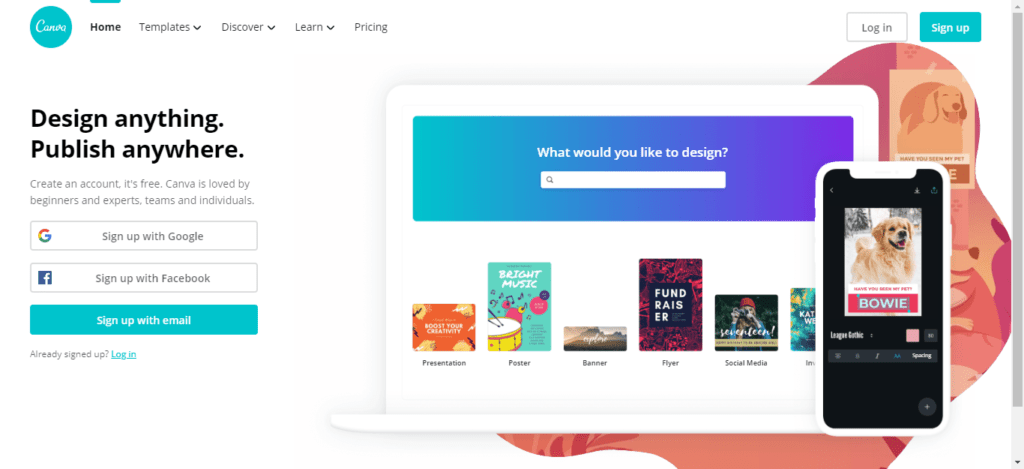 Canva is the most popular site for any design needs. Canva helps you to create posters, invitations, greeting cards, logos, infographics and much more. Canva has a large collection of tempate designs that are unique, cool and the best. By using the services of Canva you can make posters professionally without worrying about design expertise.