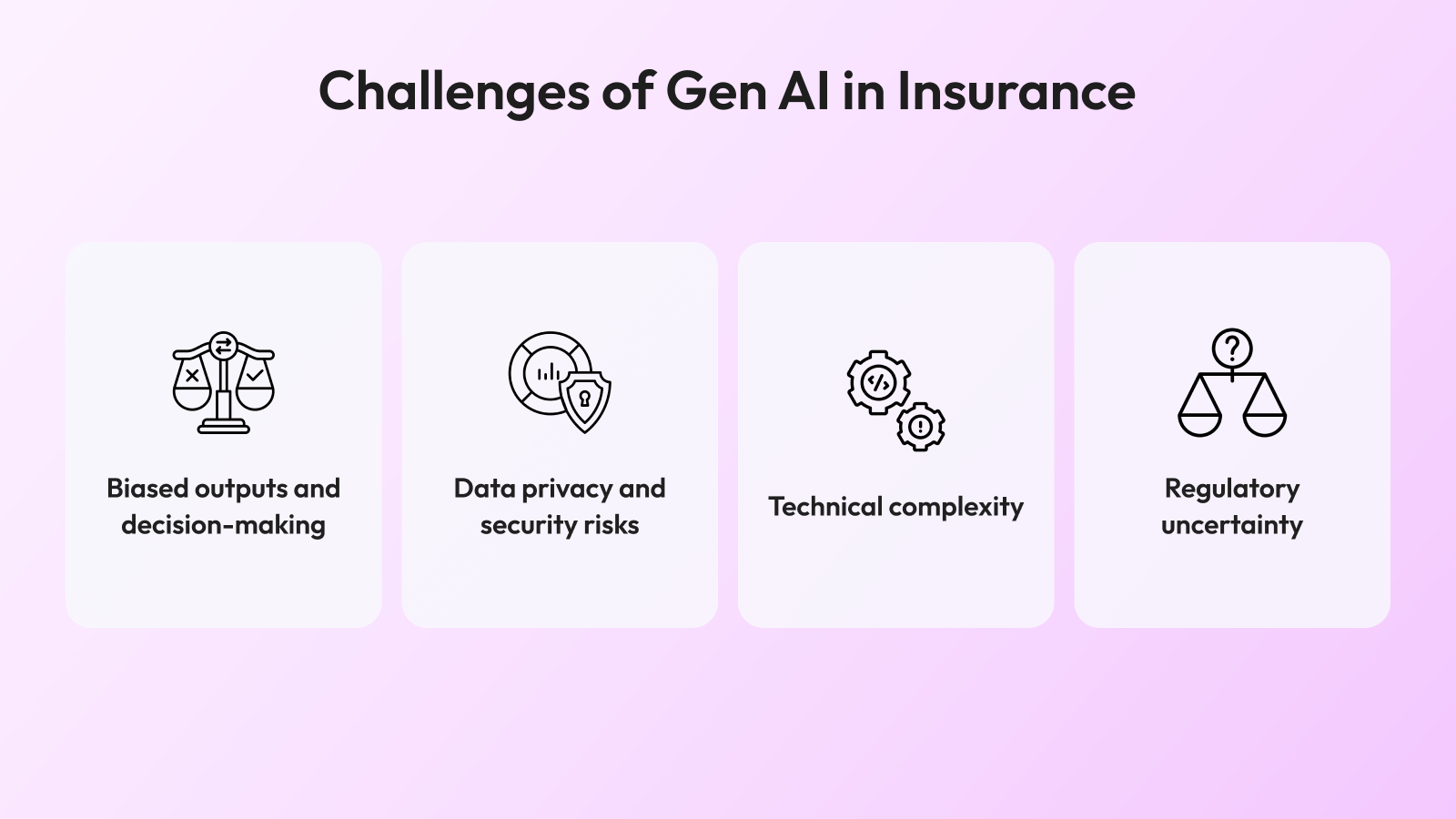 Interesting as the opportunities may be, there are several challenges insurers must confront before they can fully lean in to generative AI.