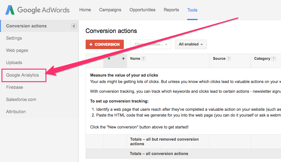 STEP 2: Connect your account to Google Analytics and put conversions in Adwords
