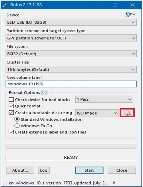 Step 3: Now click on “Start” and Rufus will write the bootable media to your USB. Again, make sure there’s nothing else on that drive that you wouldn’t want to lose.