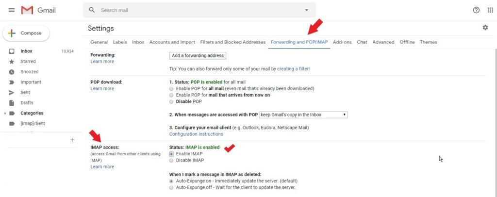 - Click on the ‘Enable IMAP’ radio button in ‘IMAP Access’ section.