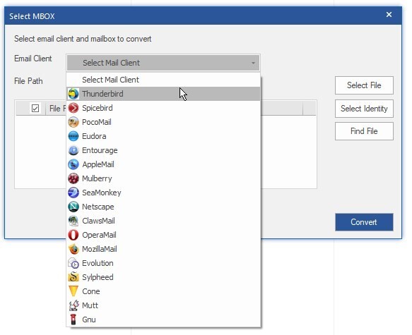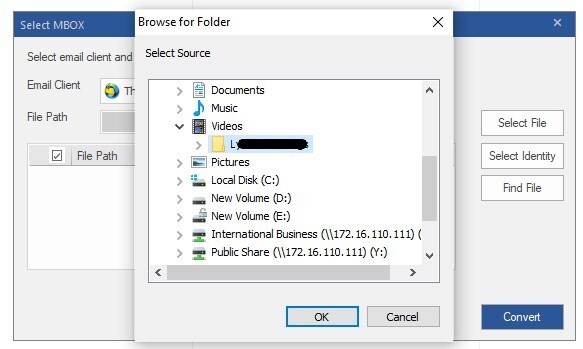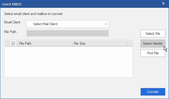 4. Click ‘Select Identity’ to browse and select the Identity folder to add Thunderbird MBOX files for conversion.