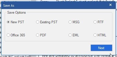 7. Choose the format to save or export converted PST. You can choose to export MBOX items to a new or existing MS Outlook PST file.