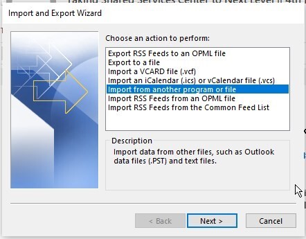 - Click ‘Next’. Choose ‘Outlook Data File (.pst)’ and click ‘Next