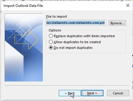 3. Browse and select the converted PST file and click ‘Next.’
