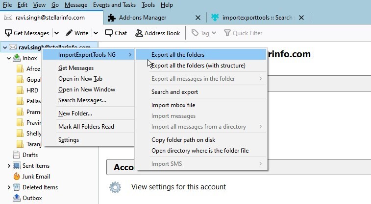 4. Then right-click on your Thunderbird profile and choose 4. ImportExportTools NG> Export all folders.