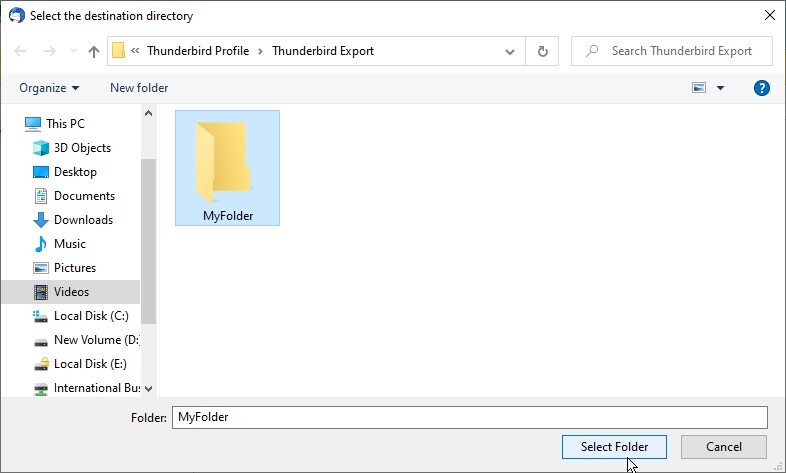 5. Select an existing folder or create new, and click ‘Select Folder’.