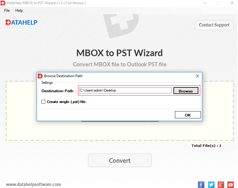 1: The tool will convert MBOX to Outlook importable PST format with entire data.