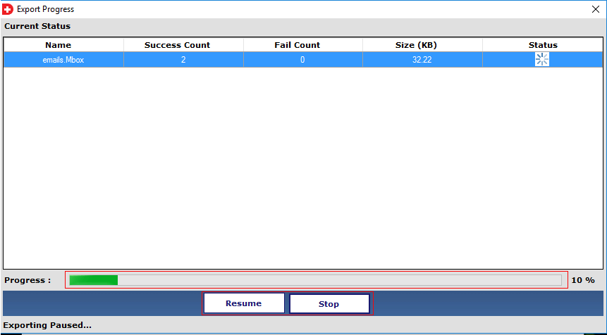 4: Now, software starts converting MBOX file to Outlook importable PST file.