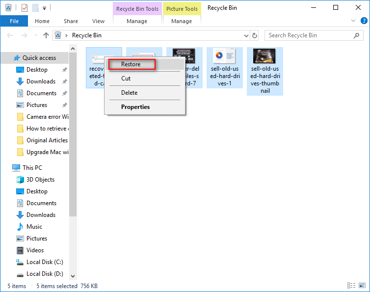 Method 2. Recover Deleted Files from Recycle Bin