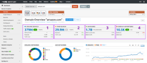 Once you have the URL of the website you want to be analyzed, copy and paste that URL into the SEMrush search bar. It will then show you data on how the site is ranked by Google, showing the ‘organic’ and ‘paid’ search results details. We recommend focusing more on the ‘organic’ side of the tool, as we’ve found the ‘paid’ search data isn’t entirely accurate.