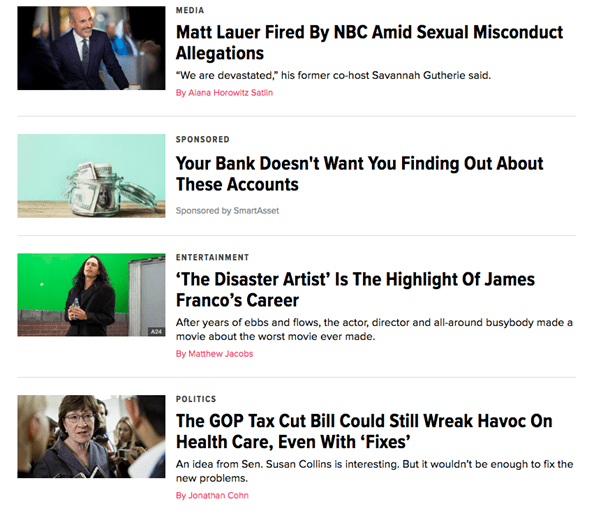 Three of the four stories in the image above have author bylines. The other one says “sponsored”… twice.