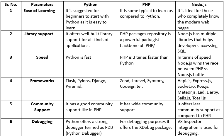 In this writing, we are going to describe the difference between Php, Node.js and python. Let’s start the journey: