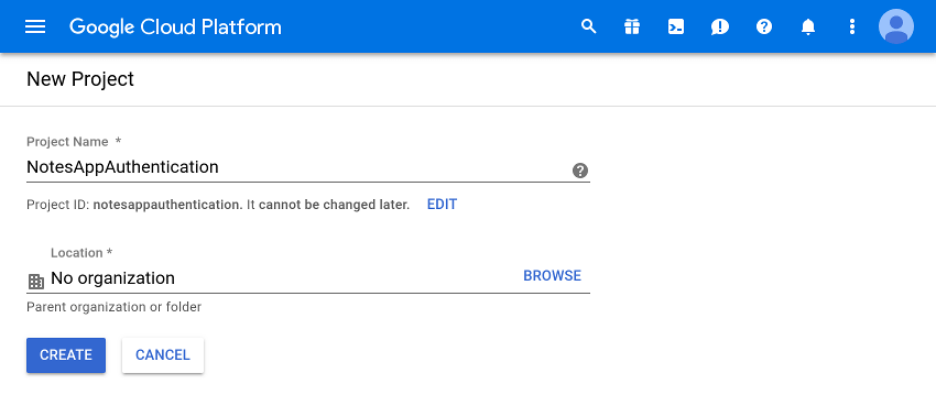For that purpose, log in to your Google account and then, navigate to Google Cloud Platform API Dashboard. Now, click on Create Project, which will create a Google Cloud project.