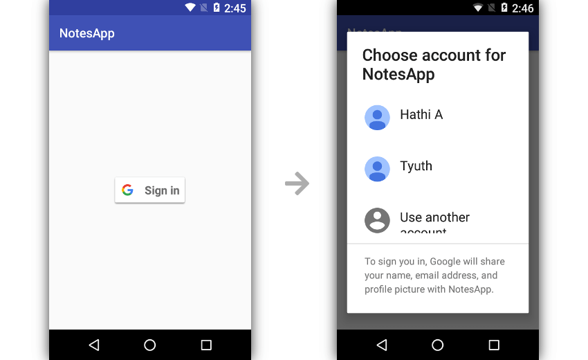 Whenever the user clicks on the Sign-In button, you should call Google’s sign-in workflow. So, in an activity, add the on-click handler.