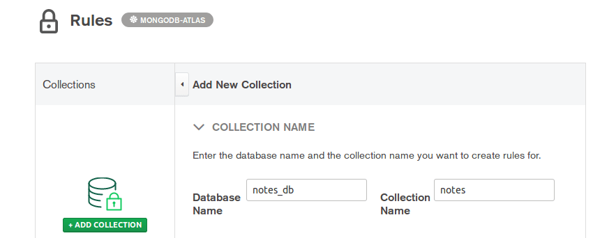 The app users must not be able to access other’s note. Therefore, adding a rule becomes essential. For that purpose, move to the Rules section and press the Add Collection button.