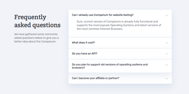 Like we said, Comparium is really customer oriented, so it very much understands one’s busy schedules and cooperates with that too. All you can do for testing is send in your official mail address along with the Website URL you want to check. And then, you can get your offline web reports and test results. It is so cooperative and easy to go with. Also, the report you get will include website screenshots and issued detailing.