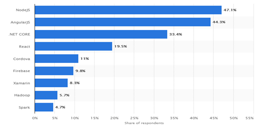 Most used frameworks among developers, worldwide, as of early 2017